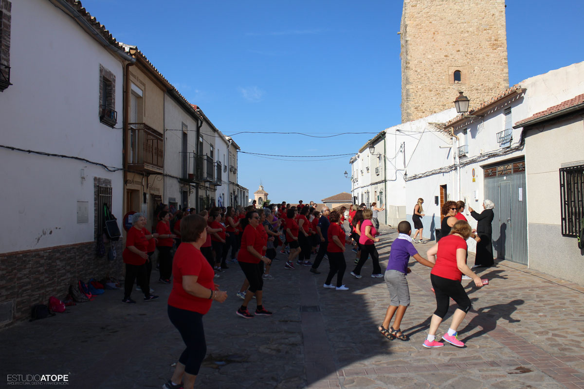 Los vecinos participaron efusivamente en las primeras horas del día: bailando y hablando con las mujeres que se acercaron a realizar la clase de gimnasia de mantenimiento, o simplemente observando. Nos comentaban alegres que esta actividad en concreto les había alegrado la mañana pese a la incomodidad de haber tenido que aparcar en las calles anexas. En esta actividad, etnias diferentes participaron del disfrute de la música y el baile. Fue una experiencia sencilla de integración y convivencia.